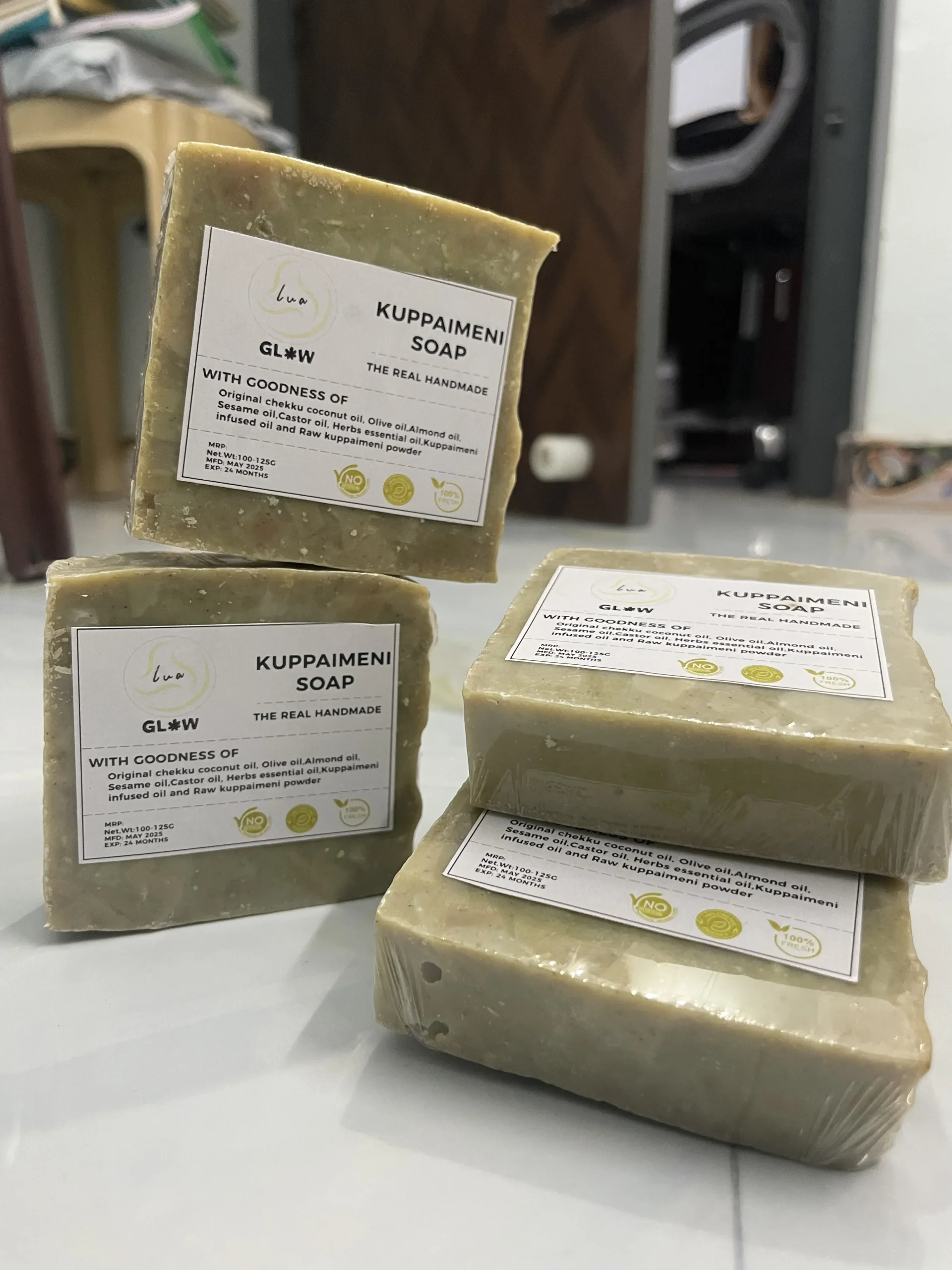 Kuppaimeni Soap is a natural herbal cleanser known for its anti-bacterial and anti-inflammatory properties. It helps treat acne, reduce skin infections, and control excess oil. Ideal for oily and acne-prone skin, it purifies and refreshes the skin with every use.